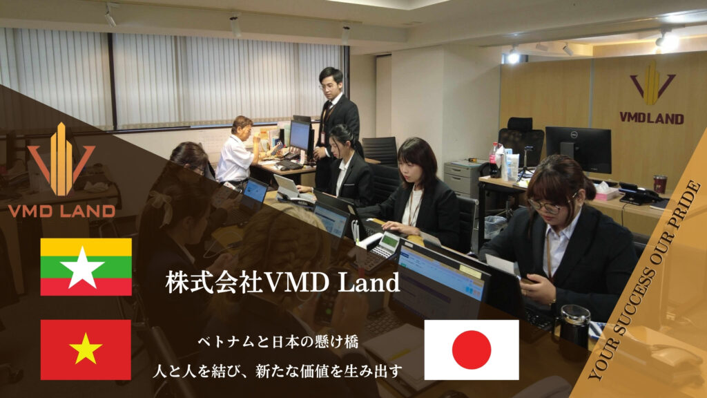 お客様 VMD LANDへ選ぶ理由 TOP 1 外国人のお客様に選ばれている不動産会社 お客様満足度 95%以上 自社アンケート調査に基づく お問い合わせ 不動産に関するご相談から、日本での生活サポートまで、トータルでお客様をサポートいたします。 会社概要 Xem thêm VMD Landのお客様 サービスを提供しております 売買物件 賃貸物件 物件管理 Xem thêm